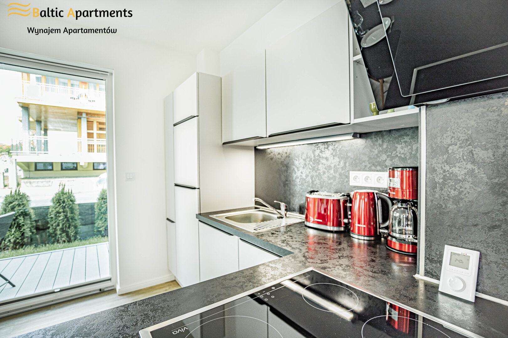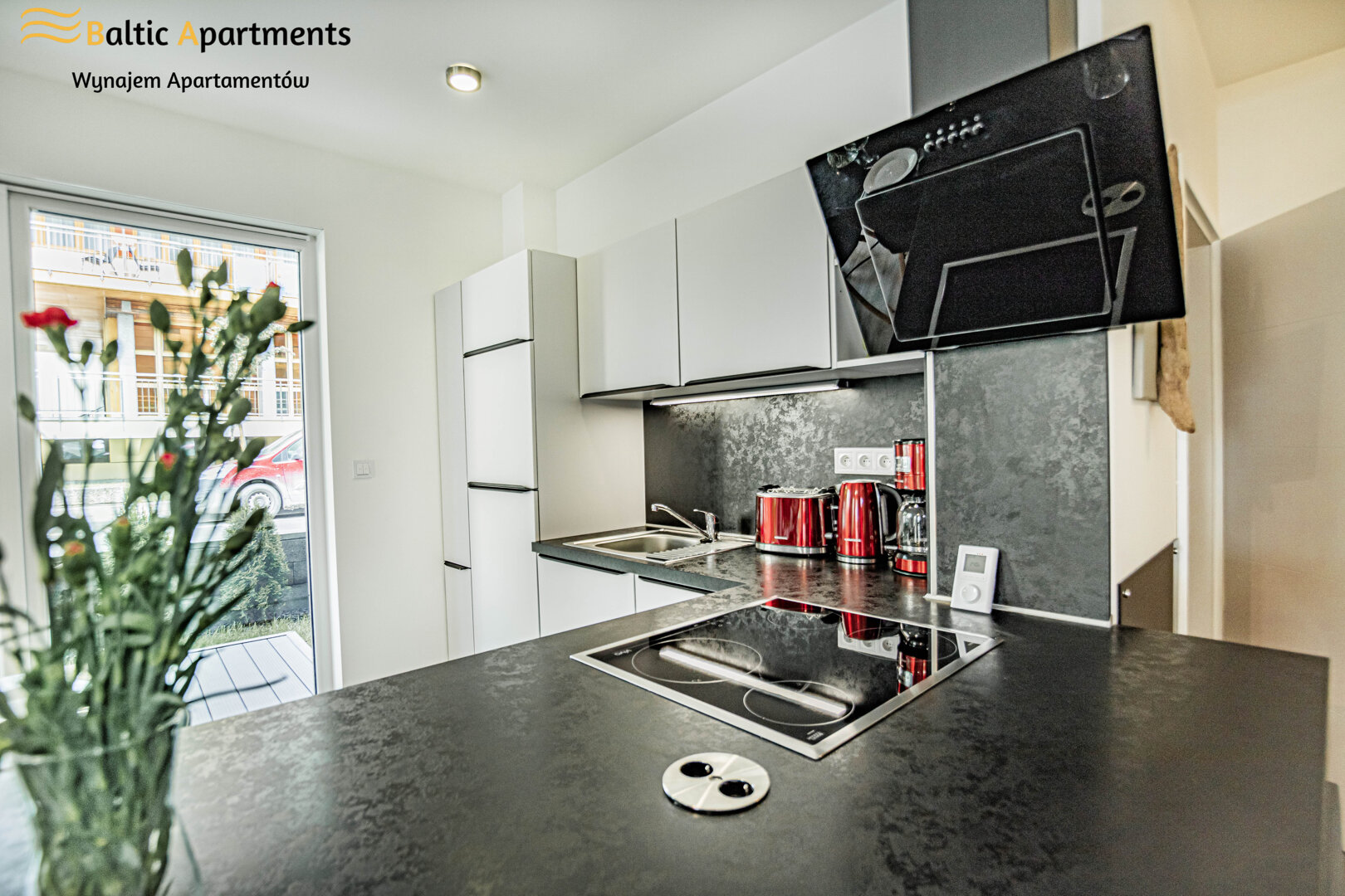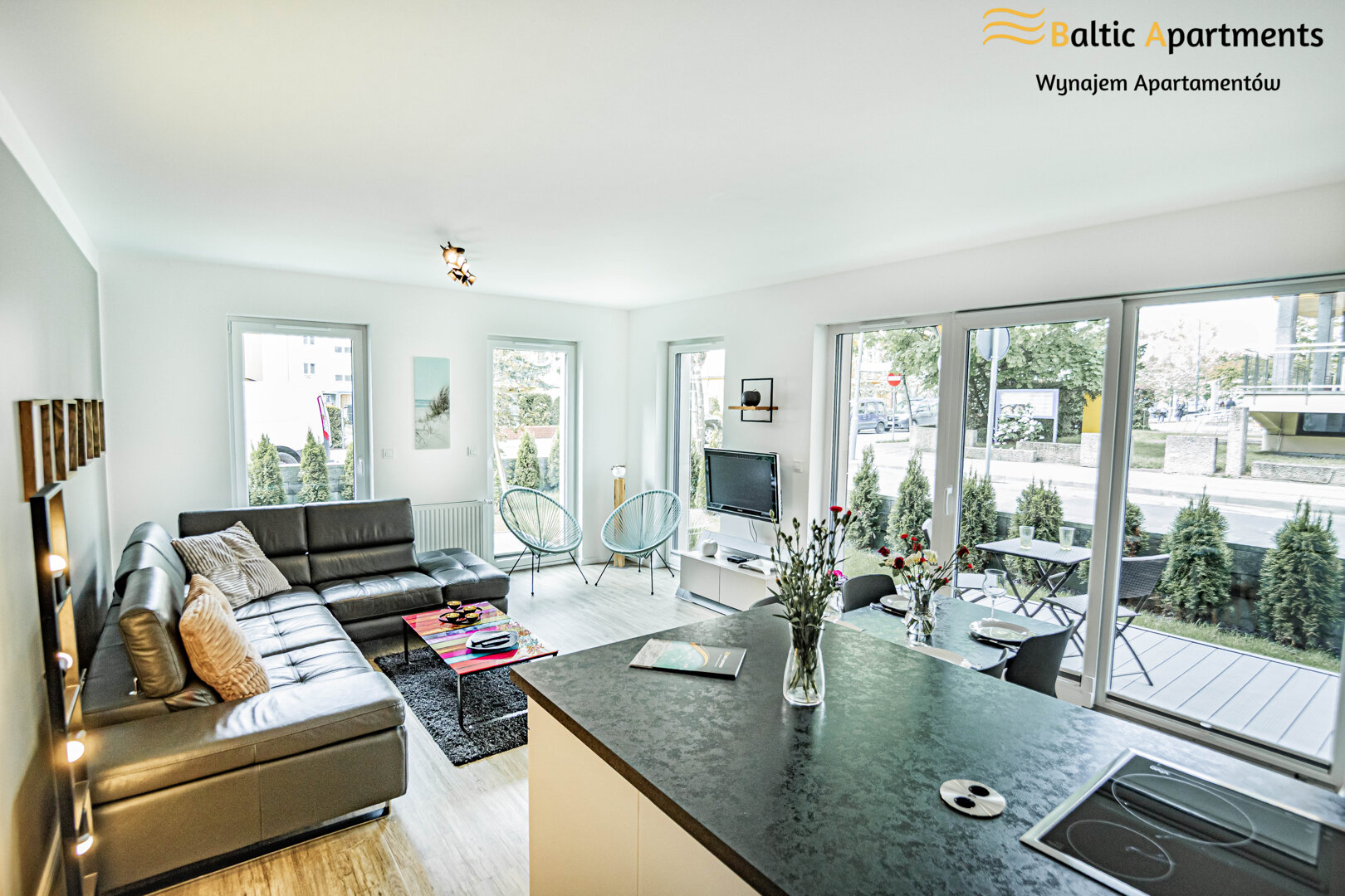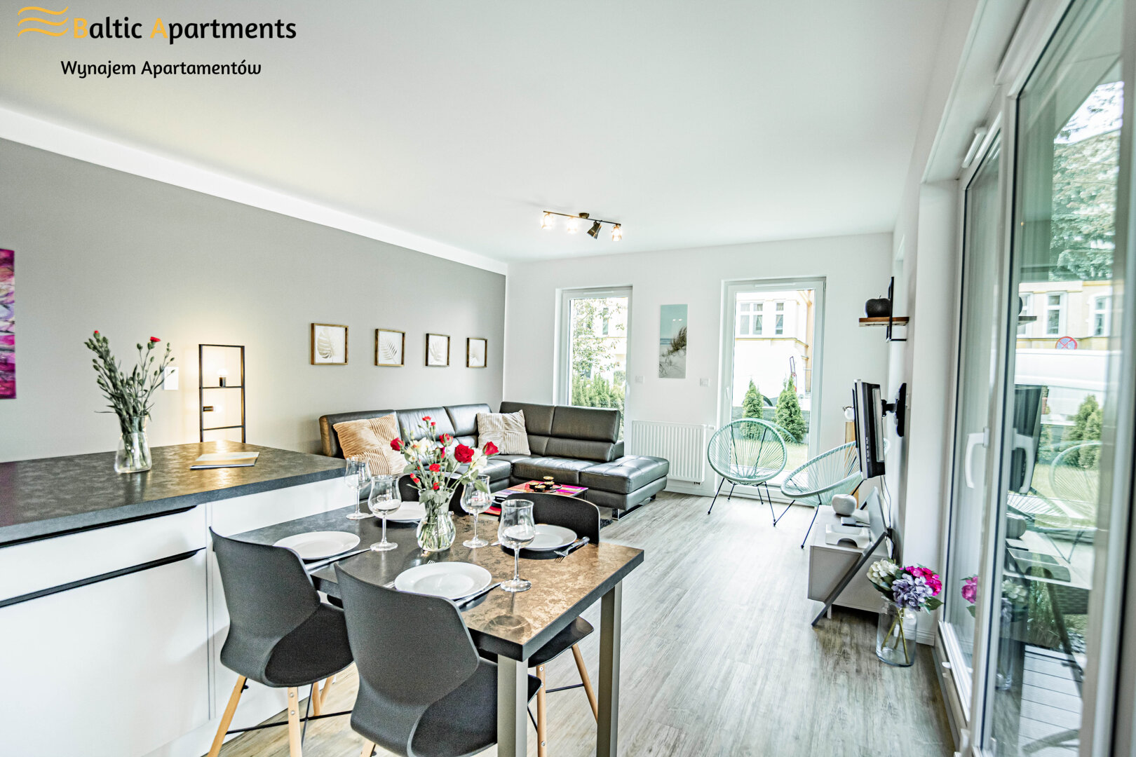 The Lissa 4 suit apartment with a recreational patio is located on the ground floor with access to a large green private garden, it can accommodate 3 people. The elegantly designed space of the apartment offers a spacious living room with a kitchenette, a bedroom and a bathroom with a shower. The apartment is distinguished by modern design and functionality. The apartment is equipped with a comfortable double sofa bed in the living room and a double bed in the bedroom, each room has access to a private green terrace, which is a perfect place to rest and relax, additionally, a fully equipped, stylish kitchenette allows you to prepare meals that can be eaten at the table. The subdued colors of the interior as well as the functionally designed space provide the apartment with an elegant and cozy atmosphere. The building has an elevator and paid parking spaces in the garage.