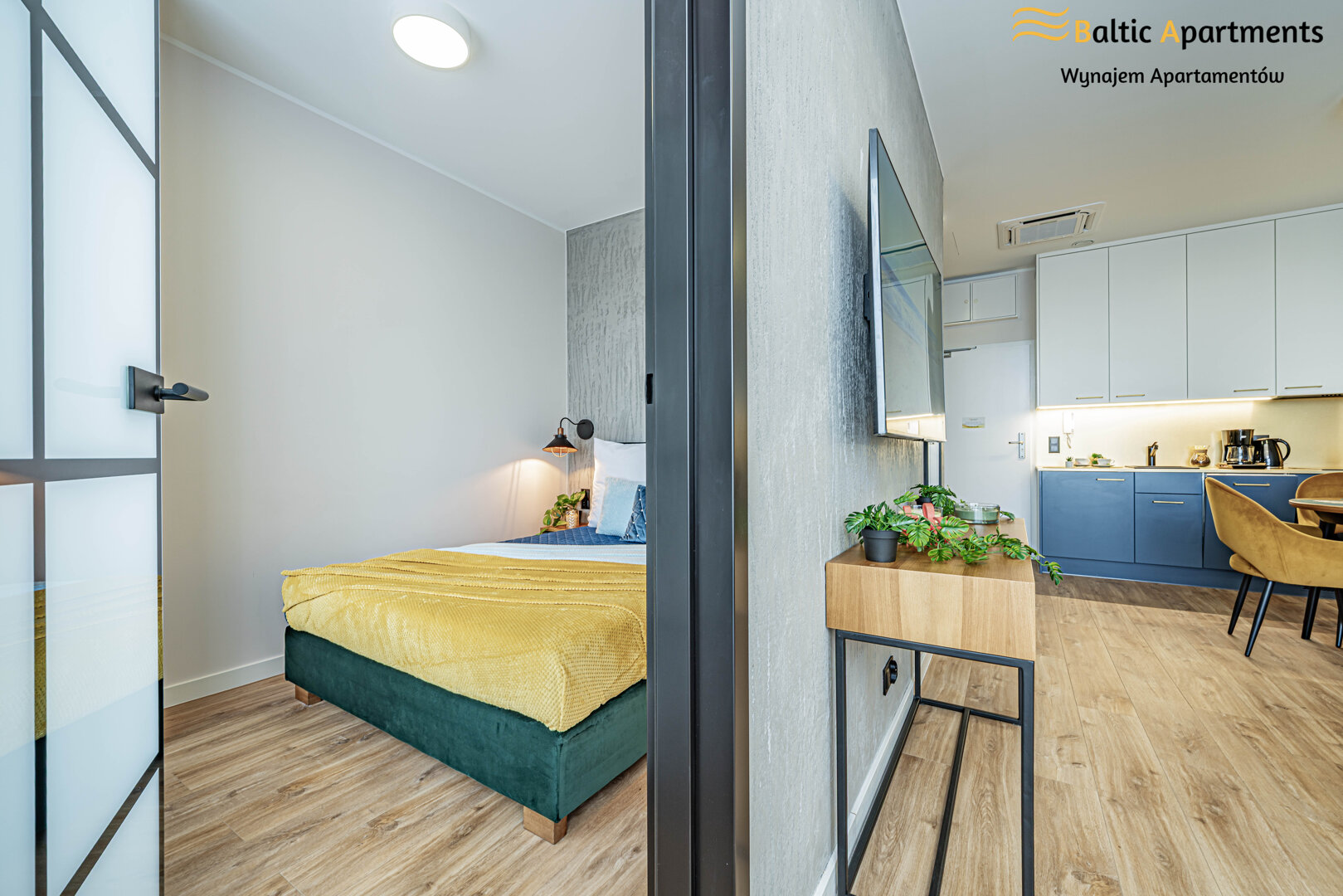 Eine Wohnung bestehend aus einem Wohnzimmer und einem separaten, abschließbaren Schlafzimmer mit hohem Ausbaustandard. Das Apartment verfügt über eine voll ausgestattete Küchenzeile und ein eigenes WC mit Dusche. Vom Wohnzimmer aus haben die Gäste Zugang zum Balkon, wo sie das allgegenwärtige Grün und die Meeresluft genießen können.