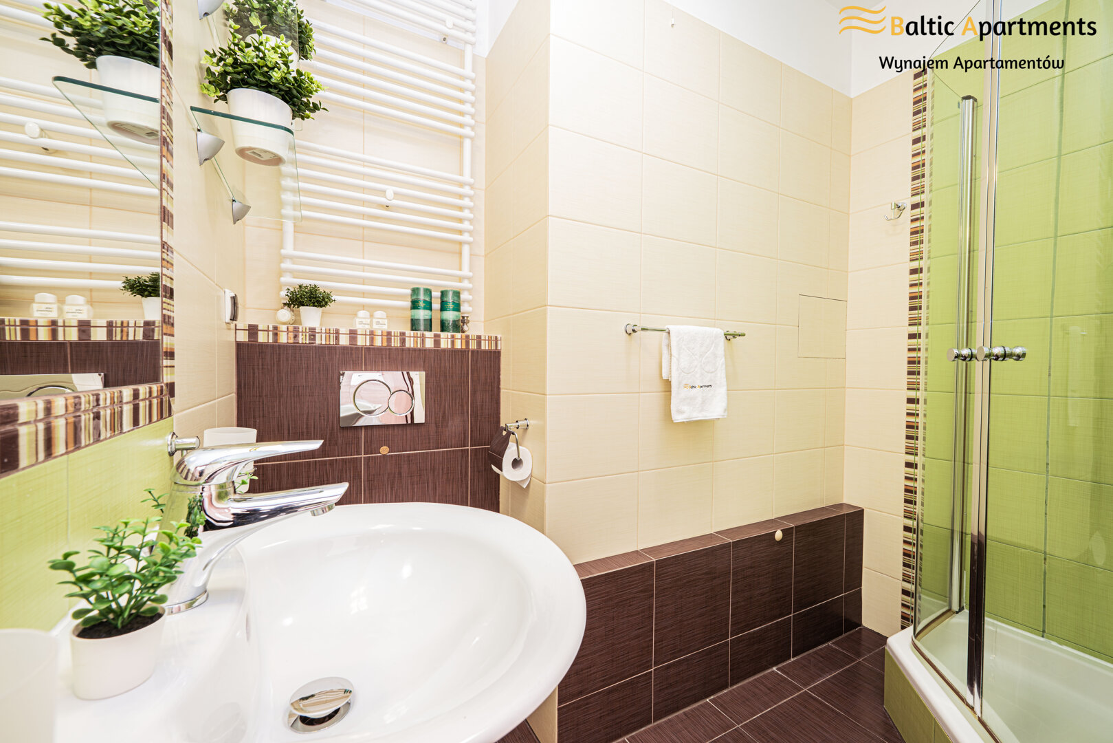The apartment is located in the most prestigious part of the seaside, in the spa district of Świnoujście, at Uzdrowiskowa Street. The apartment is located just 100 meters from the sandy beach. The location of the apartment provides a unique sea microclimate and close access to a wide range of attractions all year round. The location in the seaside district, filled with the best restaurants, cafes, numerous shops and a shopping center, provides access to various attractions and beautiful places on the map of Świnoujście. Not far away, the promenade, only 100 meters from the apartment, invites you to walk! The abundance of greenery and relaxing recreational areas (Chopin Park 250 meters from the apartment building) and the proximity of the city center allow guests to fully enjoy the charms of Świnoujście.