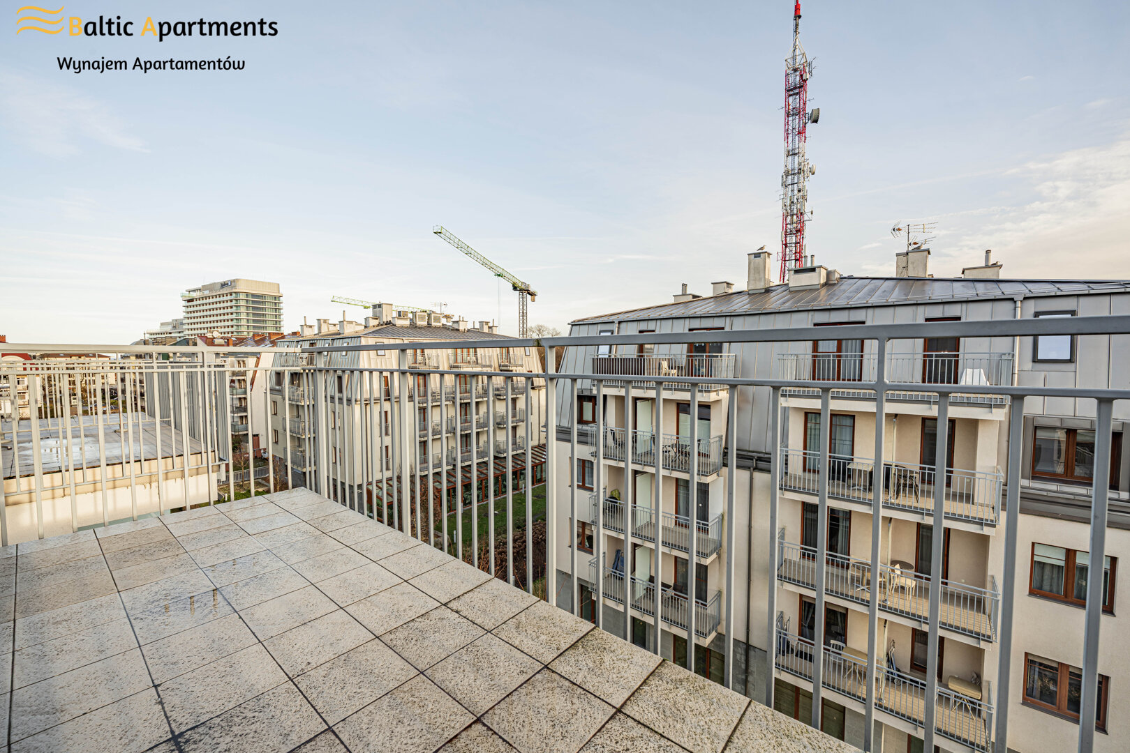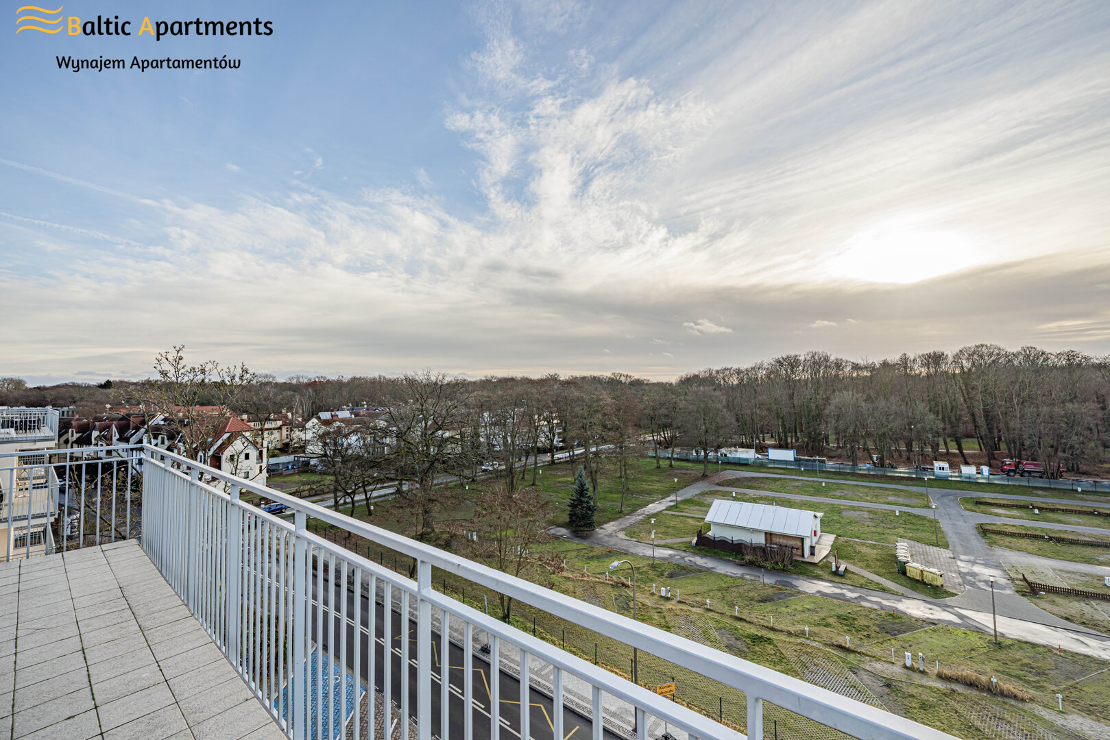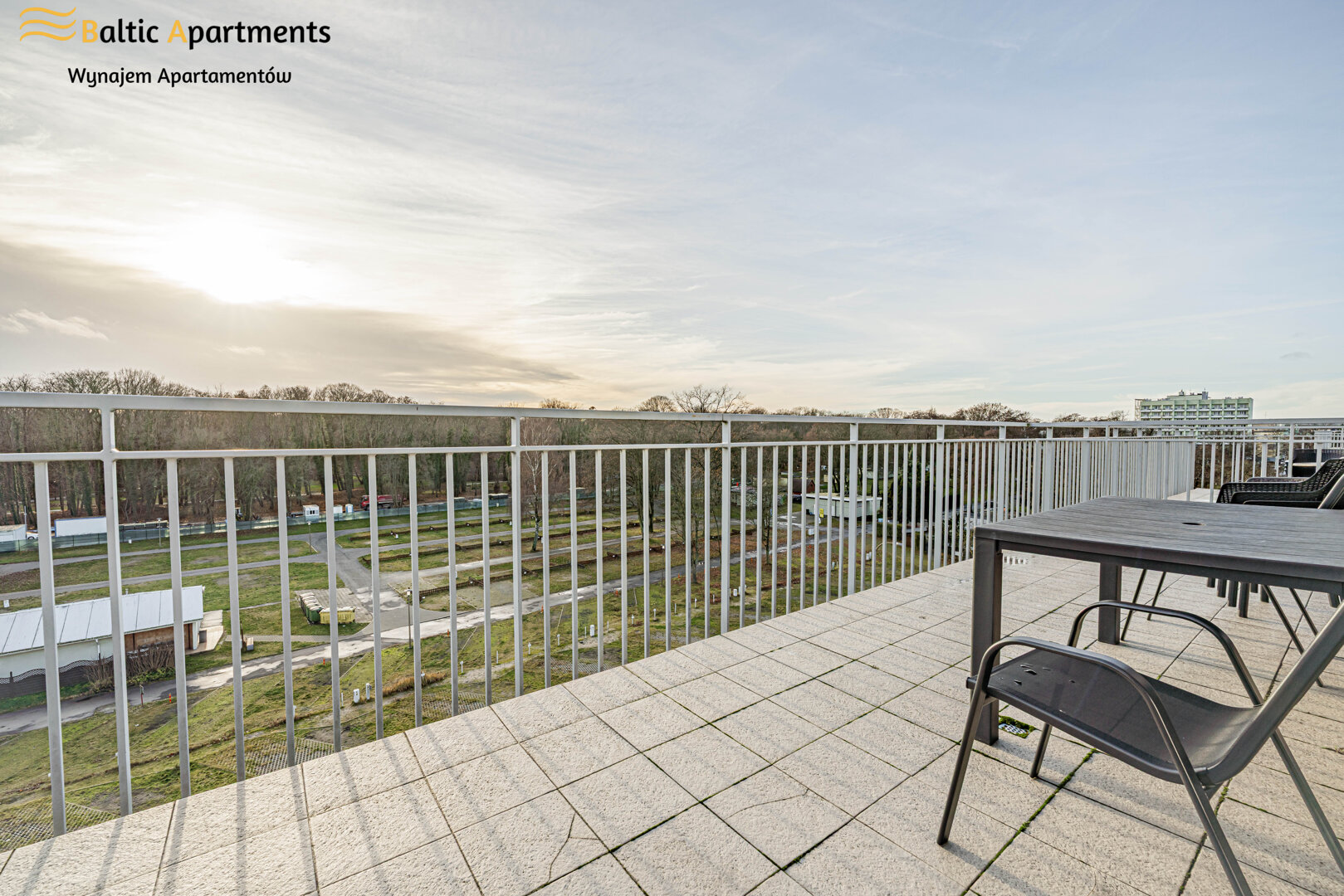 Aquamarina B41 posiada dostęp do jednego dużego tarasu z widokiem na zieleń oraz drugiego mniejszego. Na tarasie można usiąść przy balkonowym stole z krzesłami i rozkoszować się nadmorskim czystym powietrzem pełnym zdrowotnego jodu.