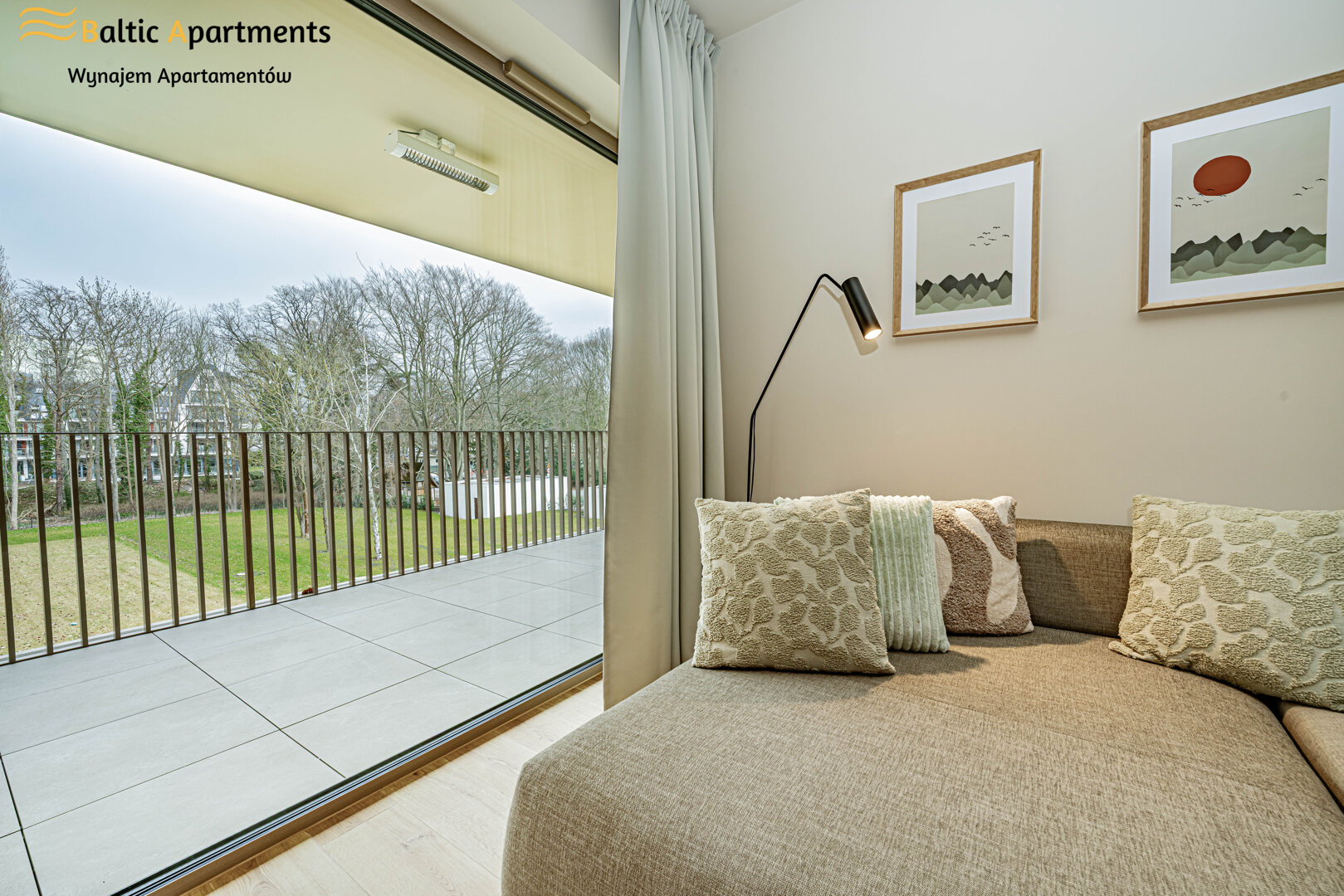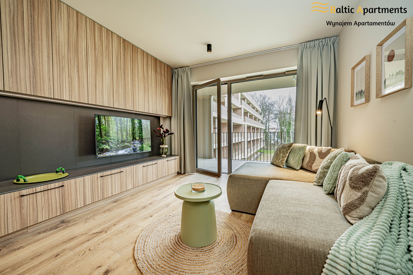 Apartament Greeneri Park A28 to nowoczesna i komfortowa przestrzeń stworzona z myślą o wygodnym wypoczynku nad morzem. Znajduje się w nowej inwestycji Greeneri Park, tuż przy Parku Zdrojowym, w odległości zaledwie kilku minut spacerem od piaszczystej plaży i nadmorskiej promenady.